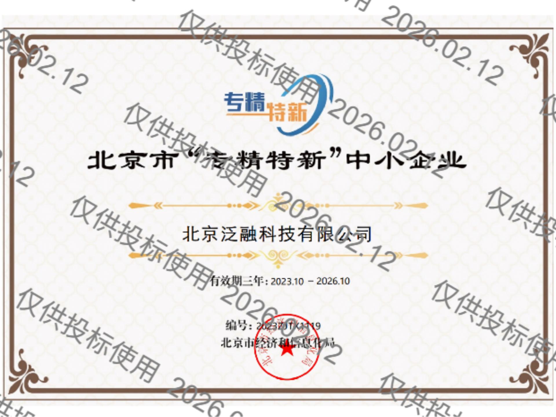 • 泛融科技荣获北京市“专精特新”中小企业荣誉称号